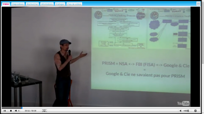 Alors là je vais faire mon petit troll. Donc ces fameuses fails, ce n’est pas parce qu’on n’est pas paranoïaque, qu’eux ne le sont pas contre moi. Là-dessus, je n’avais pas du tout anticipé quand j’avais préparé cette conférence, mais il y a donc Peter Koop, alors on ne voit pas le titre, mais il y a Peter Koop de electrospaces, qui , il y a deux jours, a fait un long fact checking, pour dire que d’après lui, l’analyse des révélations Snowden ne permet pas de démontrer qu’il s’agirait d’un programme de surveillance globale, d’un programme de surveillance massive. C’est contestable, mais son argument, enfin ce qu’essaye d’expliquer Peter Koop, c’est qu’en fait ce que fait la NSA, effectivement ça a été très bien raconté dans le bouquin d’Antoine Lefébure sur Snowden, ça a été très bien dénoncé également par Snowden. Ce qui s’est passé c’est que, après les attentats du 11 septembre 2001, comme la NSA n’a pas été en mesure de les empêcher, alors qu’ils avaient des données, ils avaient des données sur certains des terroristes, ils ont changé leur optique et ils se sont dit, bon, maintenant pour arriver à trouver l’aiguille dans la botte de foin, on va prendre toute la botte de foin. Et donc, c’est en ce sens-là qu’un certain nombre de personnes disent oui, la NSA fait du massif. Sauf que ce qu’explique ’’electrospaces’’, c’est que dans la logique des mecs de la NSA et du GCHQ, s’ils espionnent absolument tout, ce n’est pas pour écouter tout le monde. Typiquement ce qui passe dans les câbles de fibre optique, ils stockent, ils interceptent tout ce qui passe, ensuite ils passent ça à la moulinette en fonction de mots-clés, d’adresses IP, etc, et au bout de trois jours, ils effacent les données, et au bout d’un mois ils effacent les métadonnées. Donc ce n’est pas quelque chose qui vise à surveiller l’intégralité de tous ceux qui seraient contre la NSA. C’est en ce sens-là que Koop dit non, ce n’est pas un problème de surveillance massive. C’est juste une technique de renseignements, où effectivement on pêche au chalut, on ramasse tout, et puis à l’intérieur on prend les poissons qui nous intéressent. C’est contestable comme raisonnement. Il n’empêche qu’ils prennent absolument tout avec le chalut, ils prennent absolument tout et qu’en même temps, vu le nombre de systèmes qui ont été déployés par la NSA pour intercepter, oui ça relève quand même de la surveillance de masse, mais, pour lui, ce n’est pas une atteinte aussi importante que ça à la vie privée des gens.