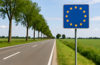 Deutschland-Grenzschild mit EU-Sternen an Landstraße, Marco Verch - Licence Creative Commons CC By 2.0